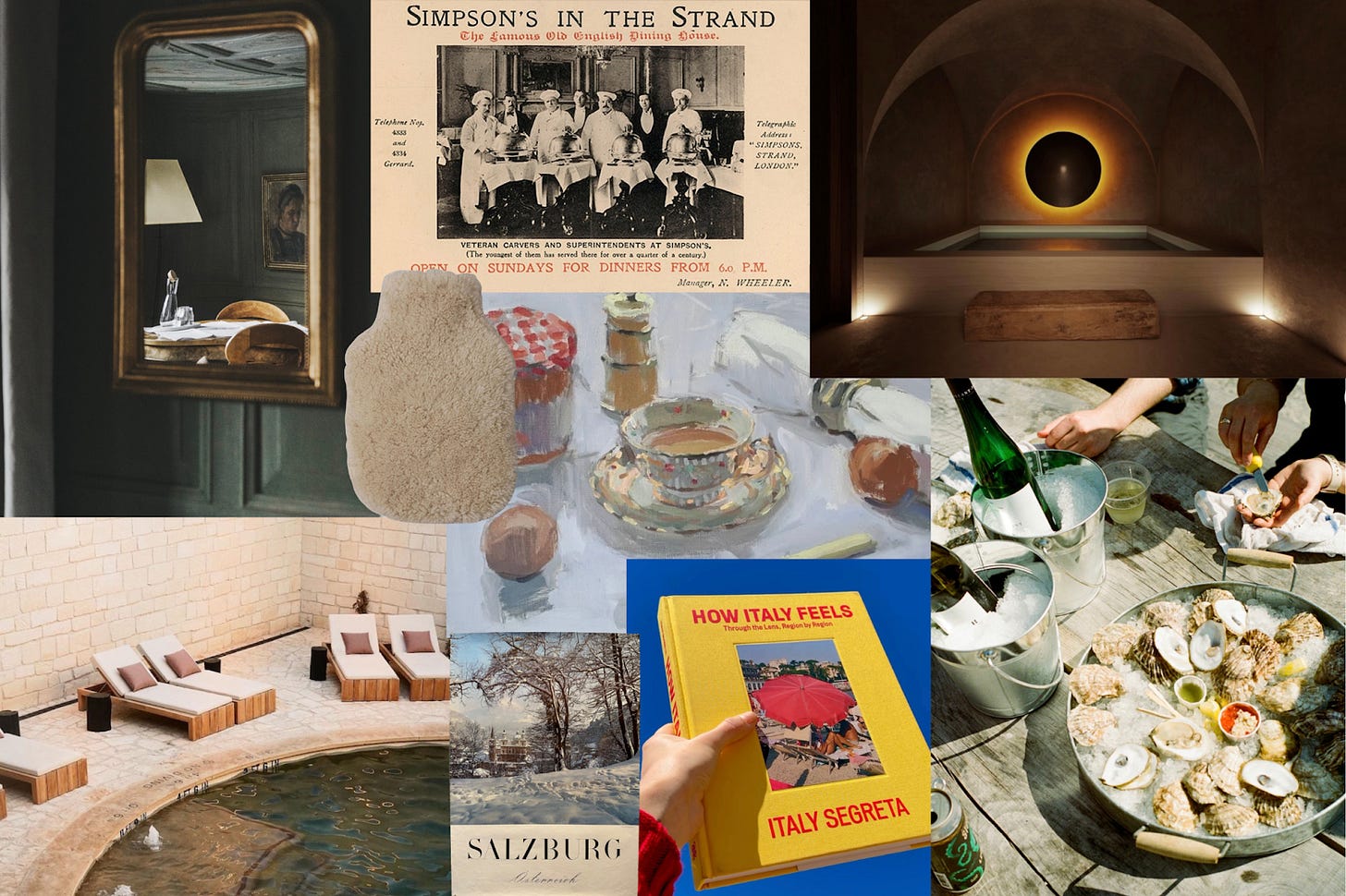 The 10th-gen Austrian hotel, Maine oyster shack/sauna, and coziest shearling boots on my moodboard—plus a new farmstay in Scotland, Tracy Emin show, global bathhouse map and other travel news